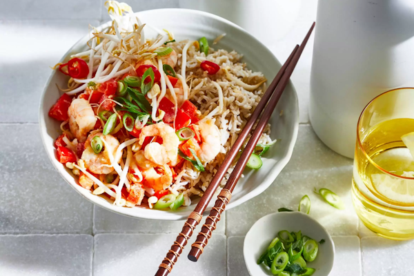Deze pikante rijst met gochujang en gebakken scampi is een heerlijk Aziatisch geïnspireerd wokgerecht boordevol smaak en textuur.