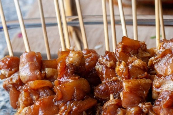 Varkenshaasspiesjes met een honing-sojaglaze.