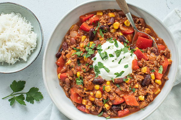 Chili con carne is van oorsprong een Amerikaans gerecht met de letterlijke vertaling chili met vlees.