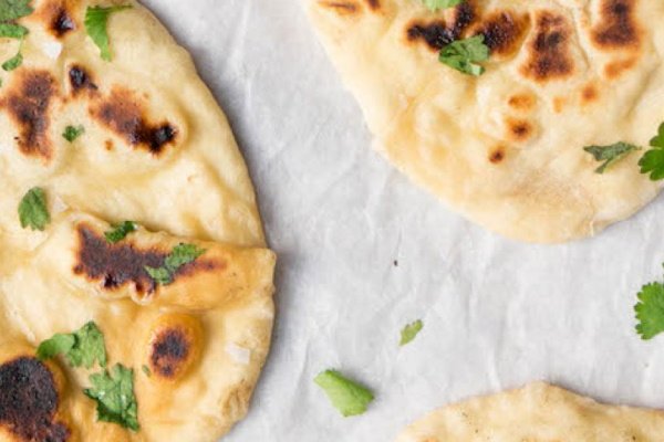 Na het bakken van de naan smeer je het direct in met de gesmolten boter en knoflook en garneer je het brood naar wens nog met een beetje verse koriander. Eet smakelijk!