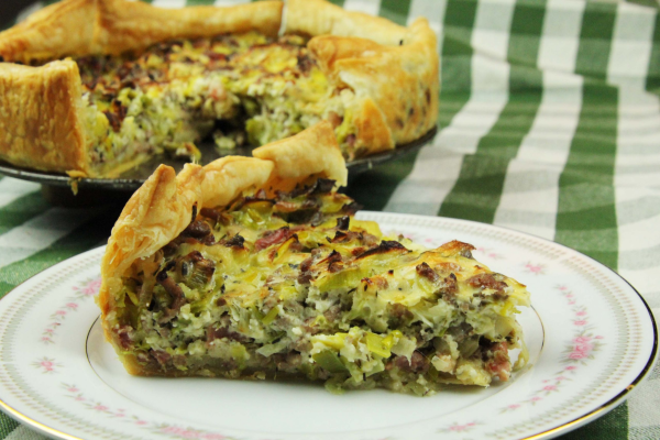 Heerlijk hartige preitaart met spekjes.