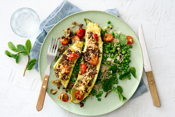 Iets makkelijks en heerlijk uit de oven, maak eens gevulde courgette met gehakt.